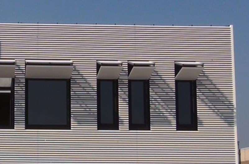 Cilium is a dynamic sun protection system, that can be transformed from a vertical sun protection system in front of a window to a horizontal, open position above a window. This solution limits the overheating of buildings during the warm summer months and minimizes the use of artificial cooling systems. During the cold winter months the low position of the sun allows the warm rays to enter the building under the retracted folding shutters, which limits the use of artificial heating. This Cilium® can be discretely integrated in exterior walls with identical cladding or as a separate element constructed in front of a window. Cilium® is available as standard in two versions: with Sunclips® SE.096 or Sunclips® SE.130 blades.